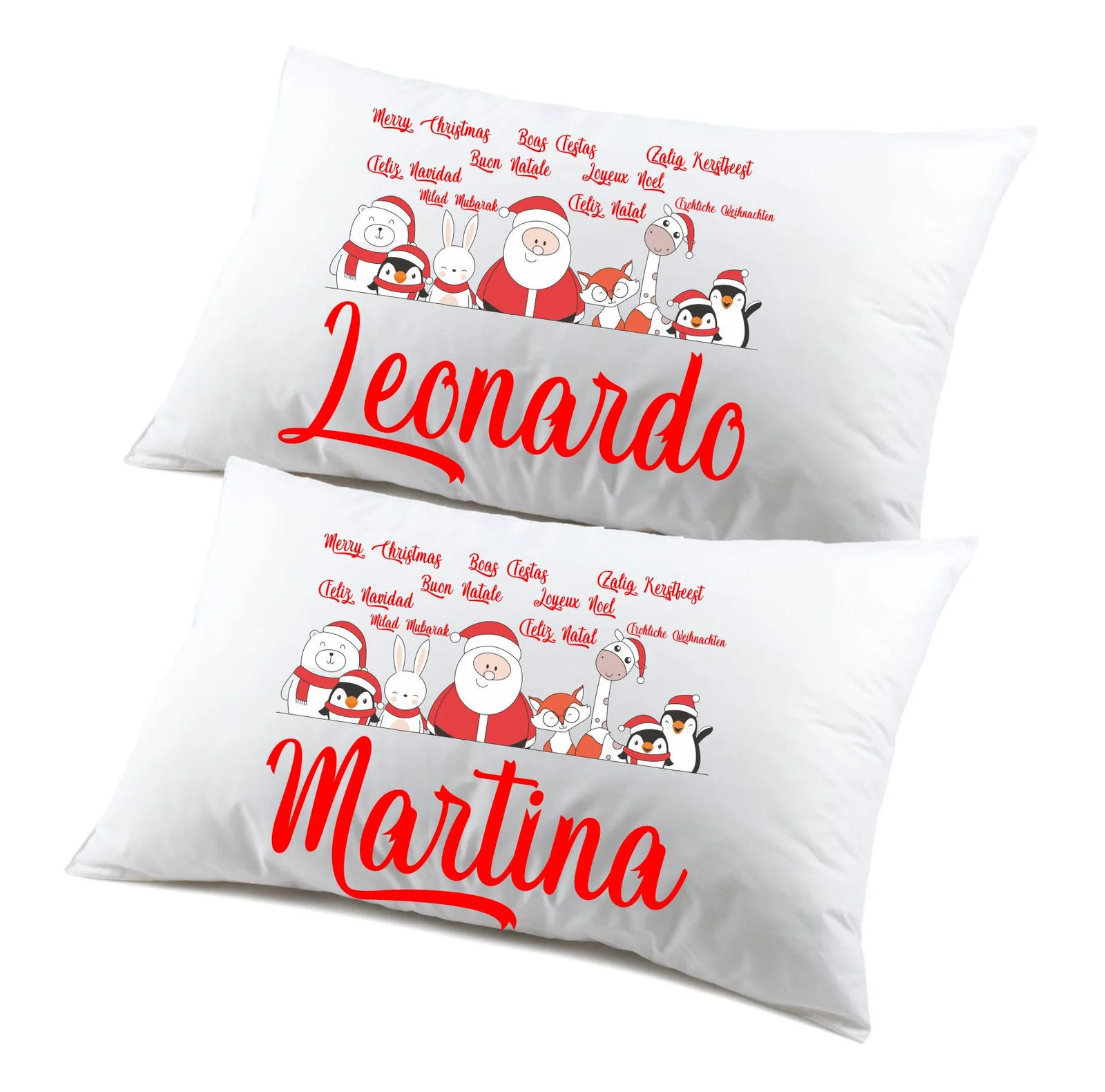 Coppia di federe PERSONALIZZABILI matrimoniali natalizie divertenti Natale Personalizza con nome