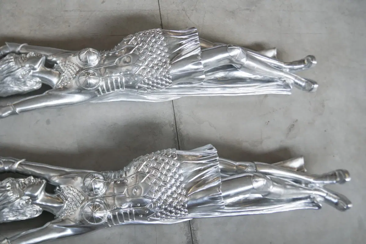 Coppia di grandi sculture Art Déco in resina, recuperate da una nave da crociera degli anni ’90