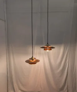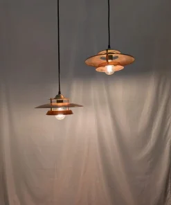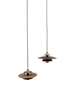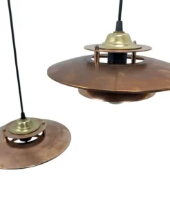 Coppia di lampade a sospensione anni 70 in rame spazzolato in ottime condizioni.