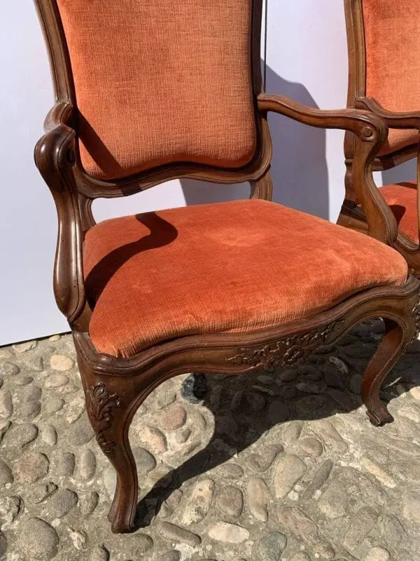 Coppia di poltrone in legno di noce intagliato. Genova, XVIII sec.