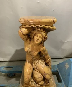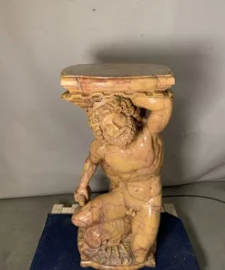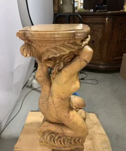 Interamente in marmo giallo scolpito in stile Barocco. Raffiguranti Poseidone e Anfitrite reggenti un piano orizzontale reggi-vaso.