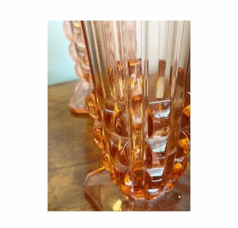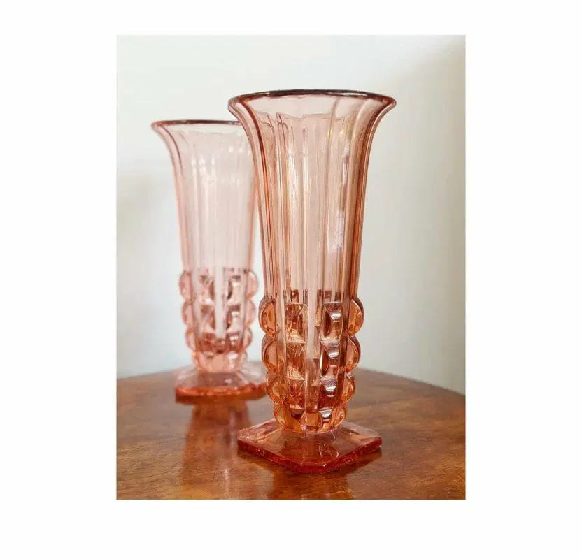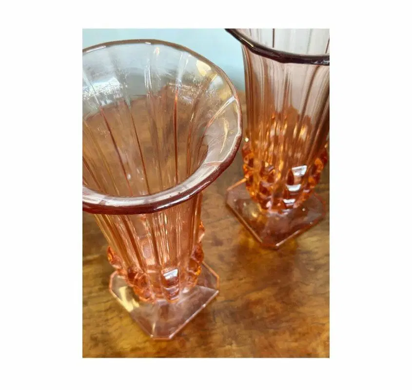 Coppia di vasi francesi, 1940, in vetro rosa