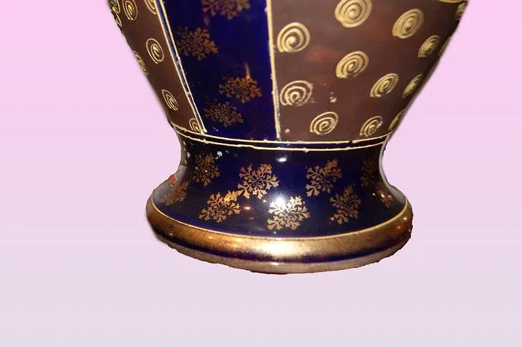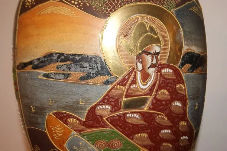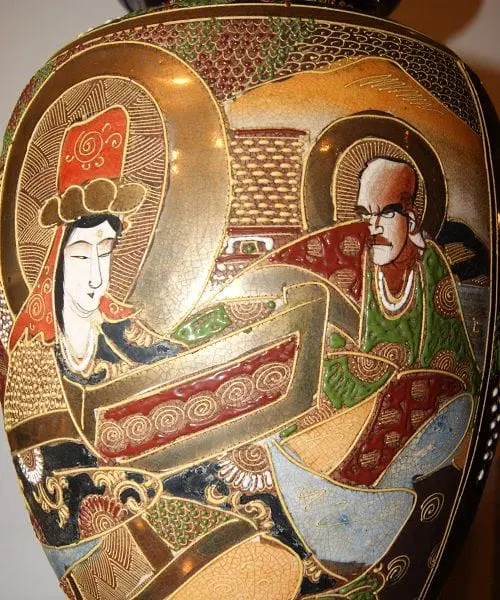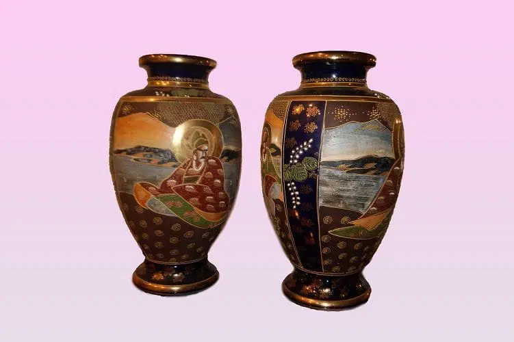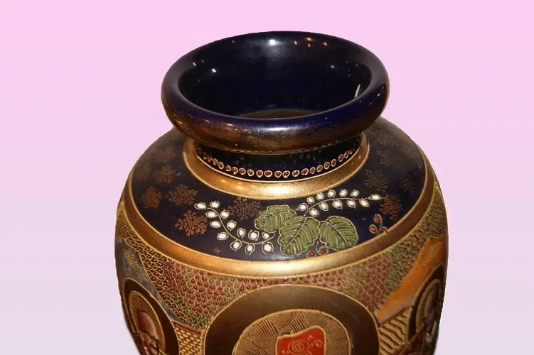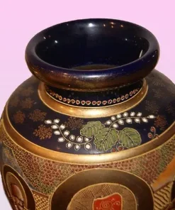 Coppia di grandi vasi Giapponesi Satsuma di metà 1800 riccamente decorati. Marchio della manifattura sul fondo.