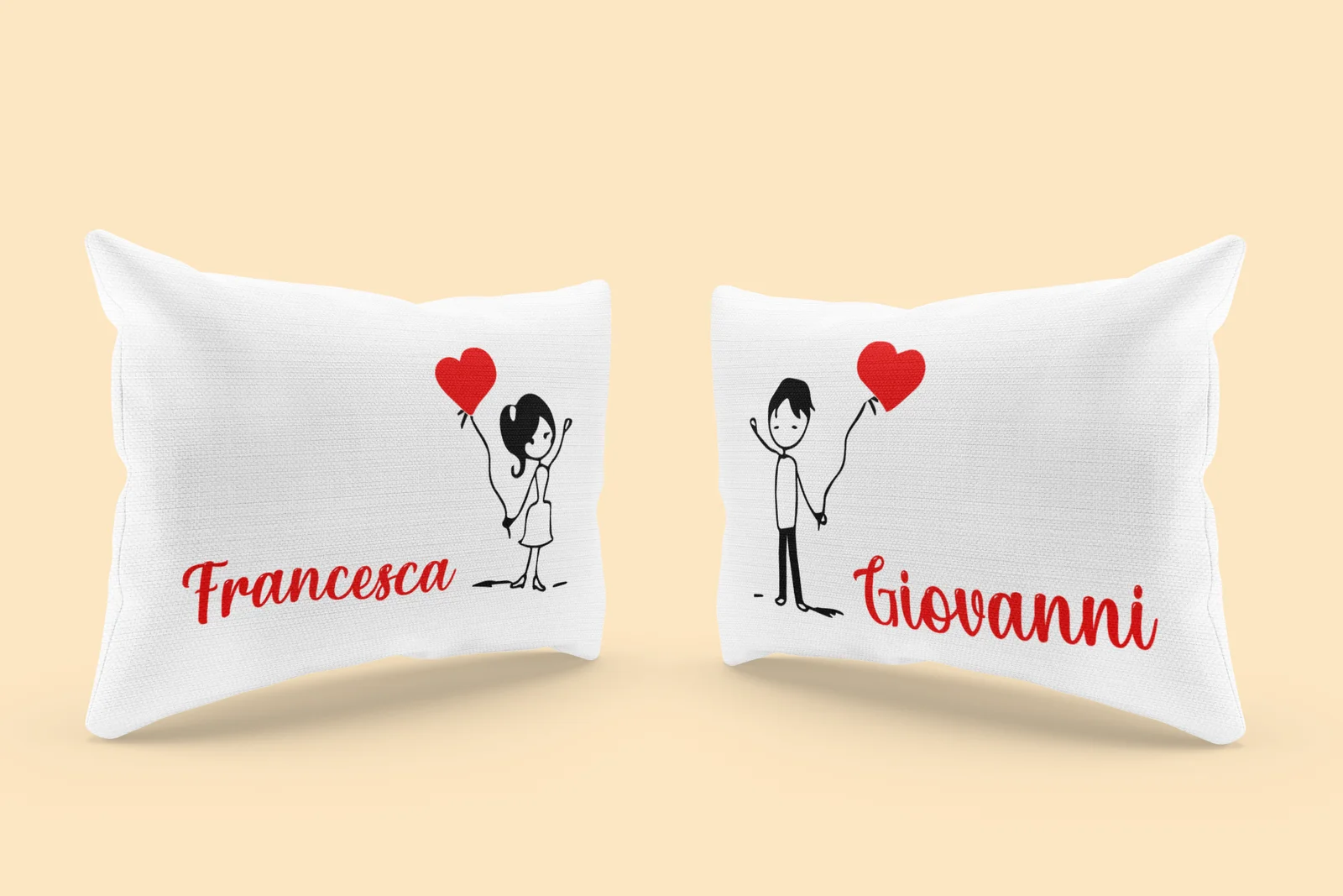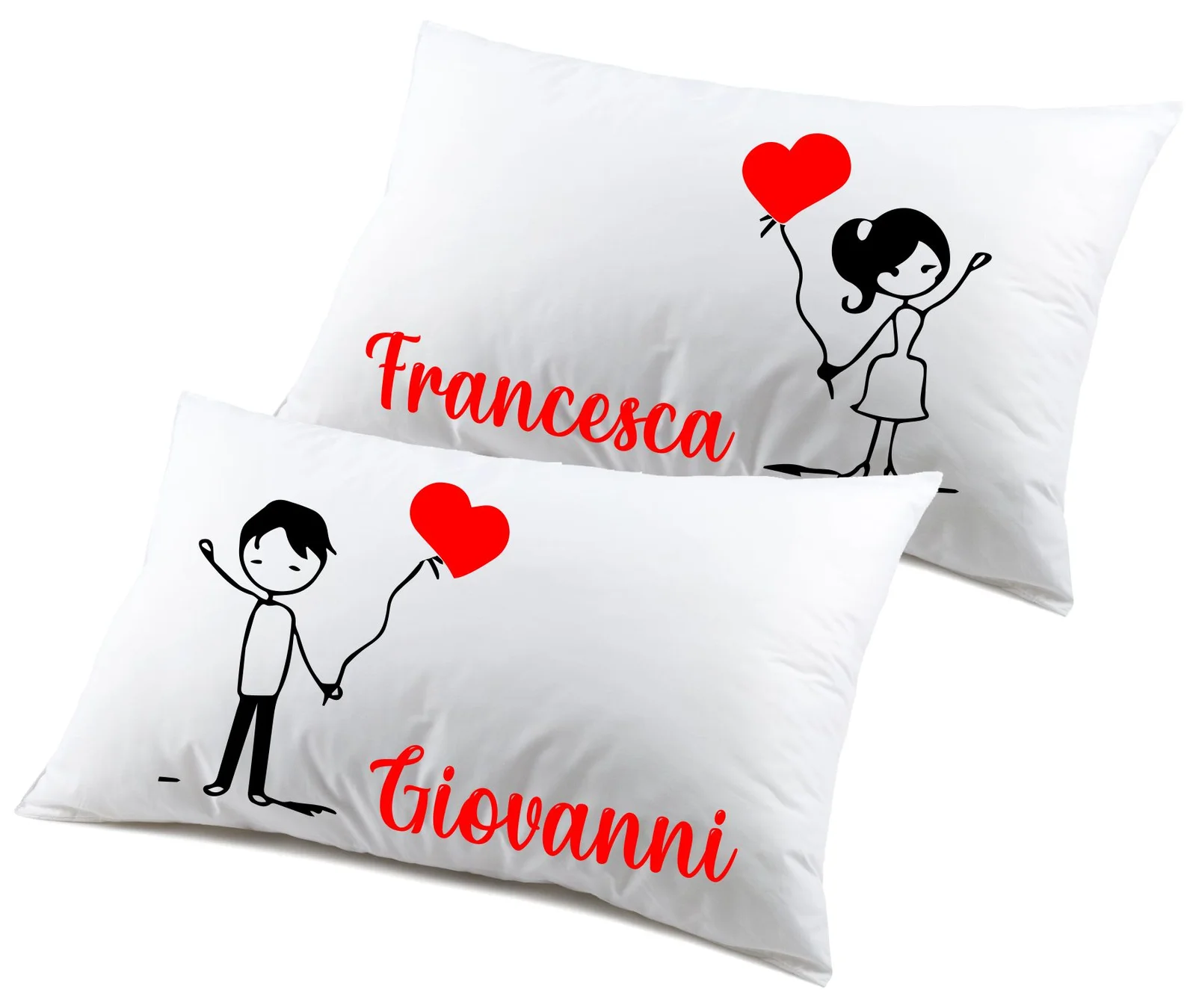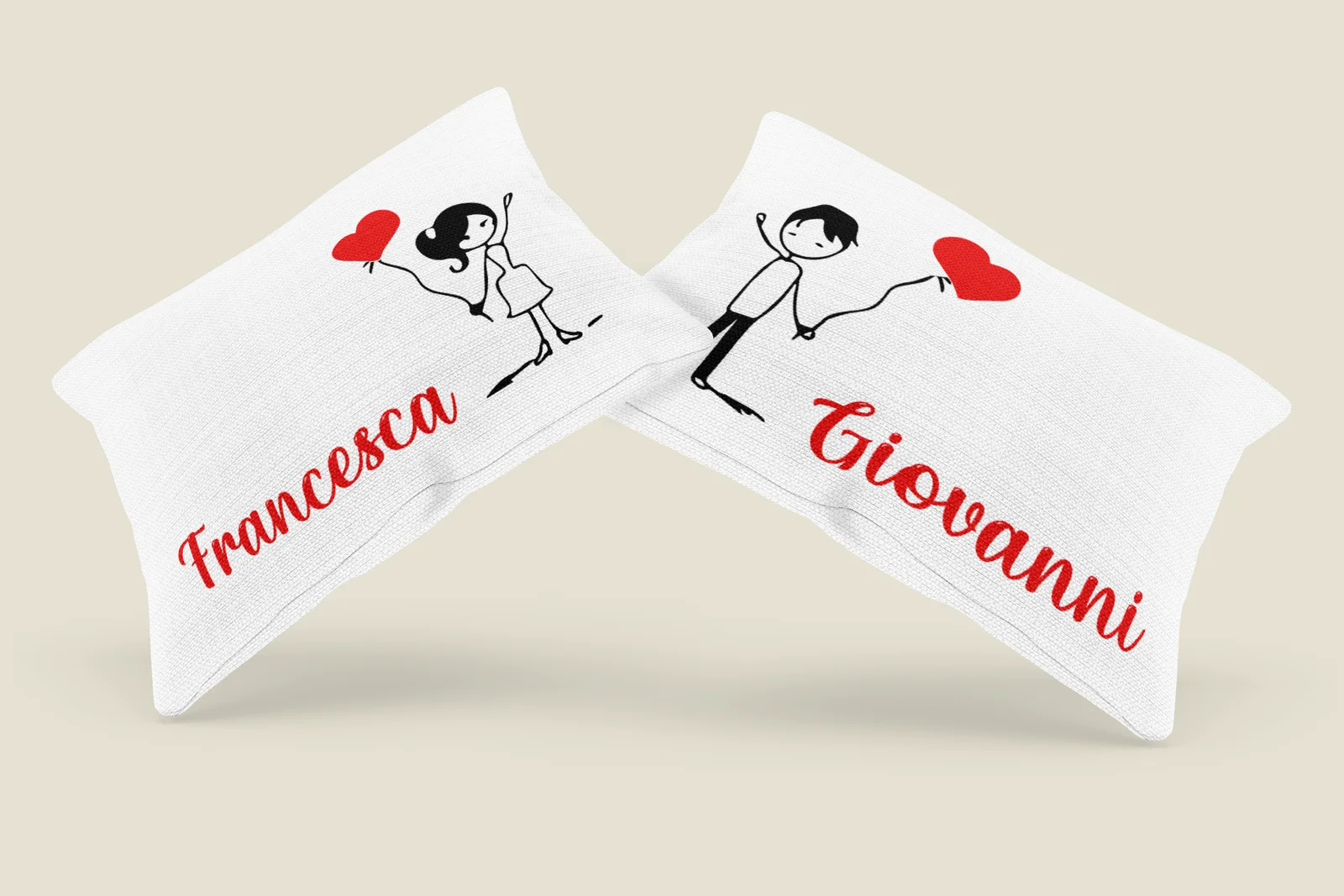 ISTRUZIONI PER LACQUISTO: Seleziona il tasto Personalizza, inserisci i nomi da personalizzare sulle due federe, seguendo le istruzioni, una volta personalizzate le due federe, aggiungi il prodotto al carrello e termina lacquisto.