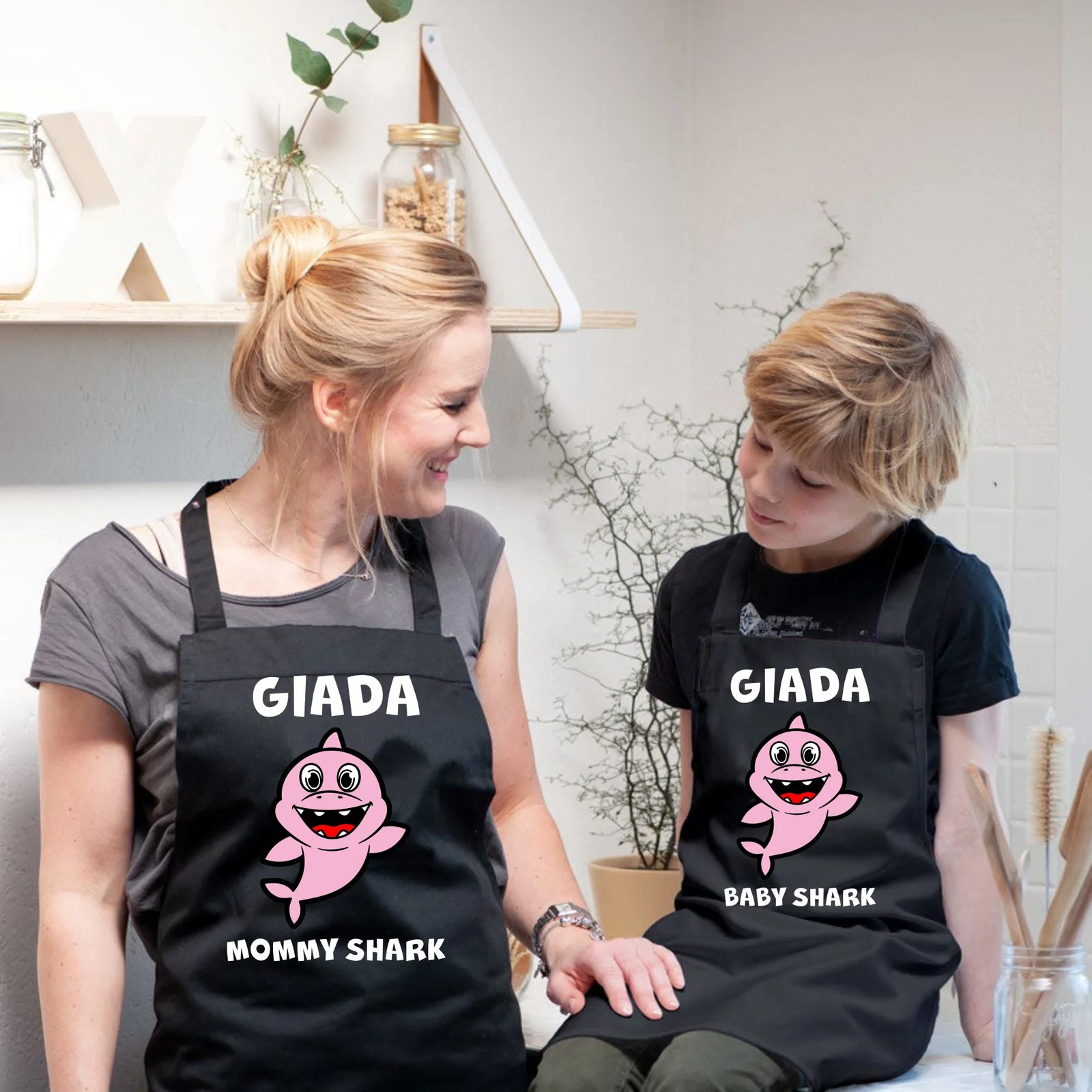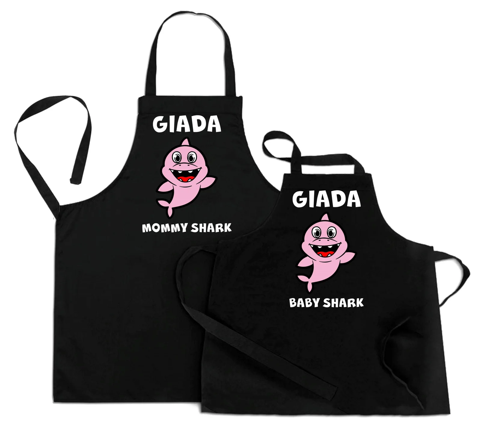 Coppia Grembiuli cucina PERSONALIZZABILI divertenti Mamma Figlia Festa della Mamma Mommy Shark Baby Shark Idea Regalo Mamma