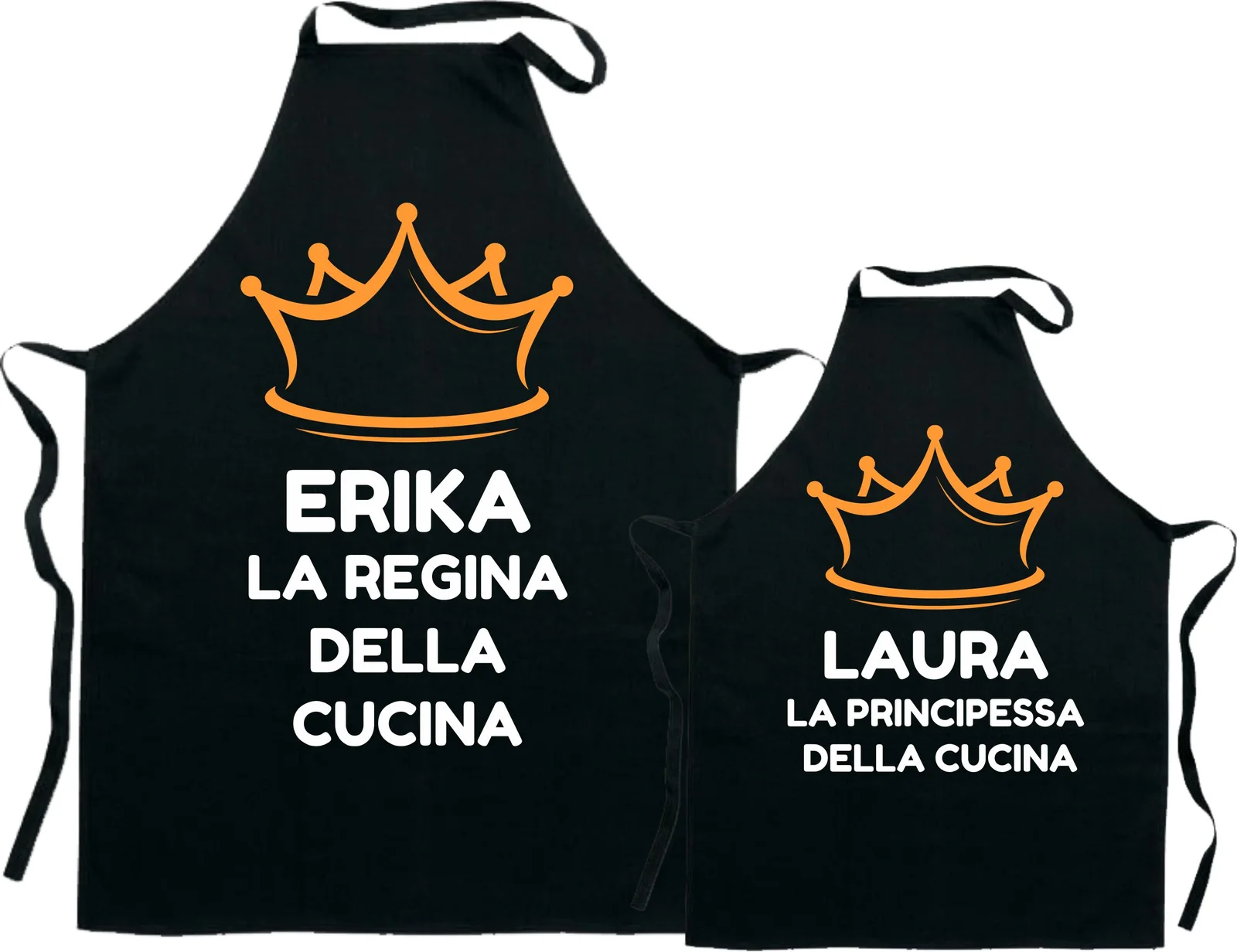 Coppia Grembiuli Mamma Figlia Cucina Personalizzabili Divertenti Festa della Mamma Regina e Principessa della cucina Idea Regalo Mamma