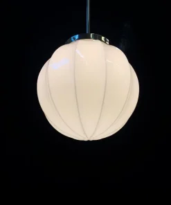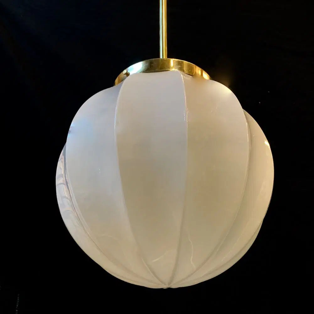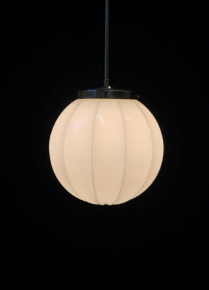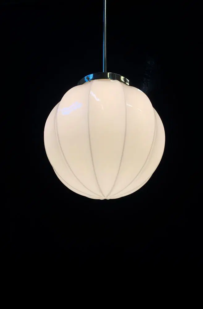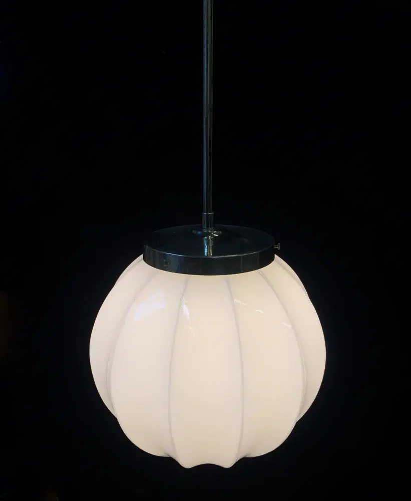 Il vetro è bello color bianco latte smontabile, sorretto dalle classiche 3 viti della struttura del del lampadario.