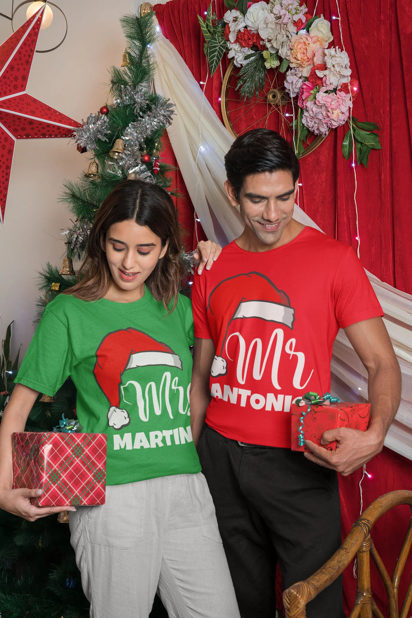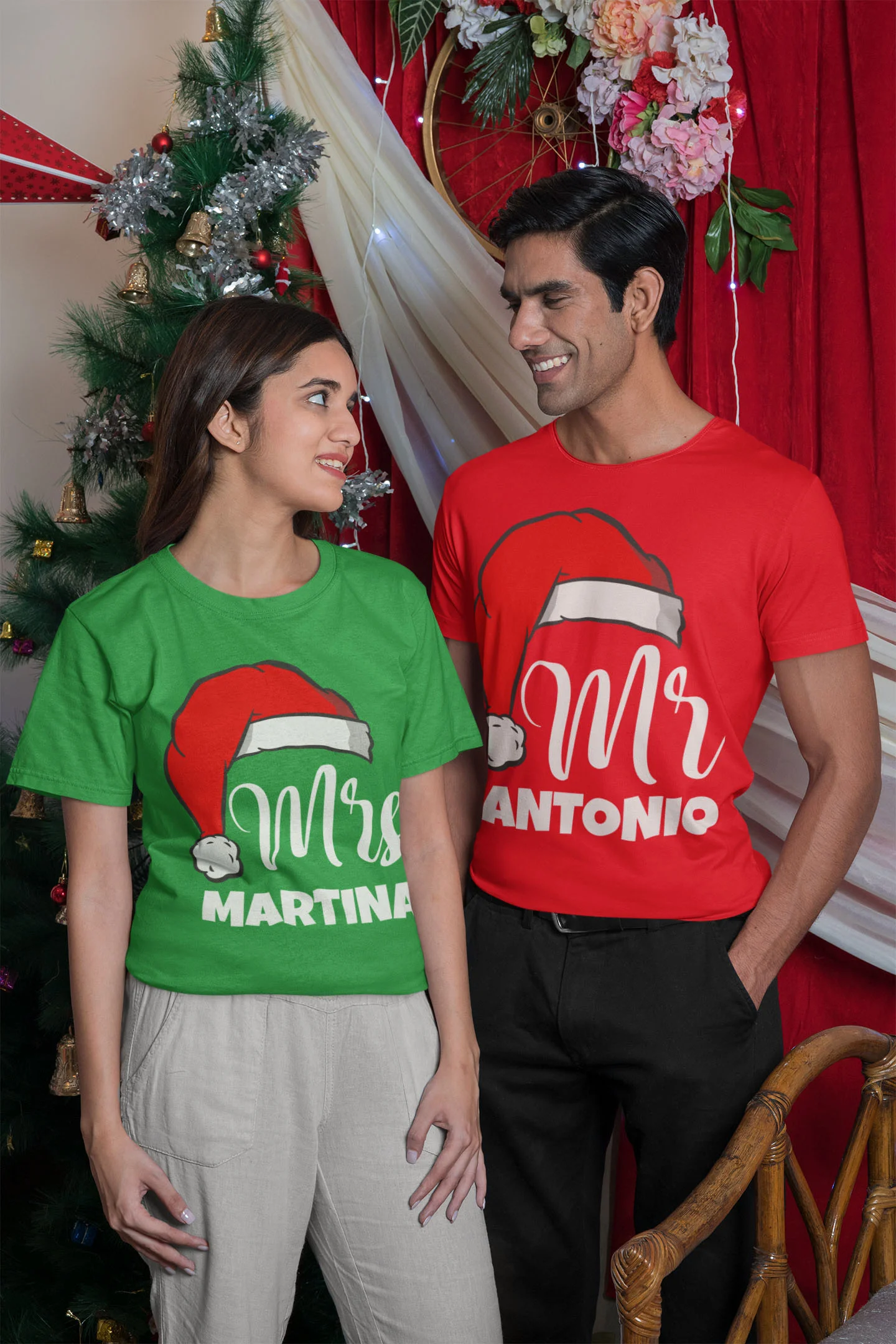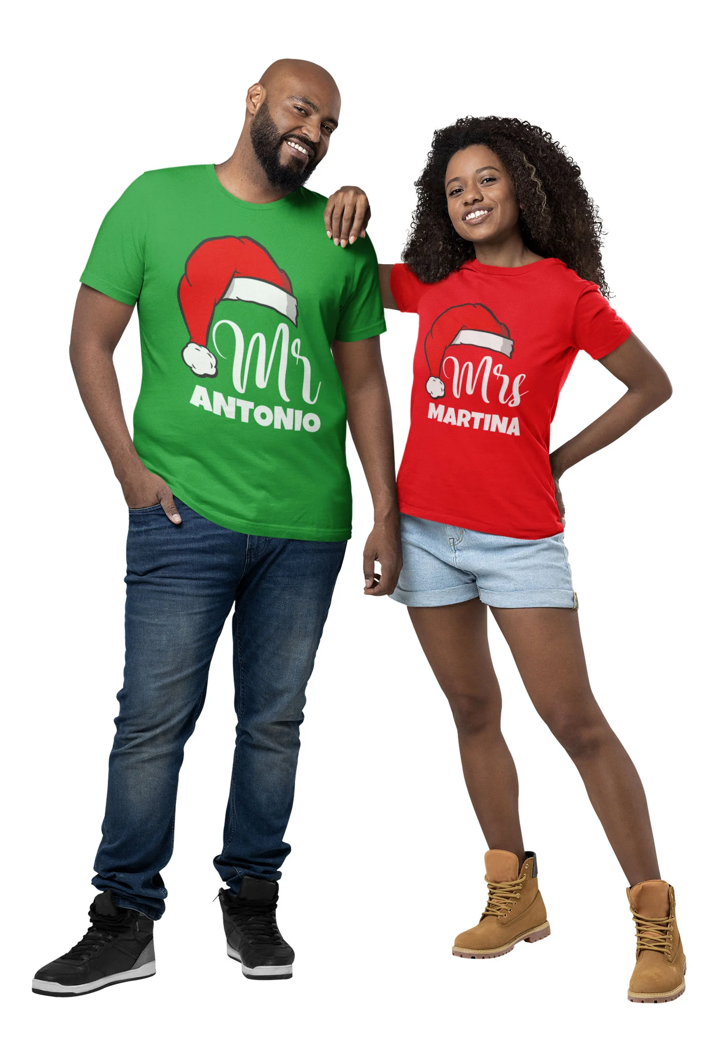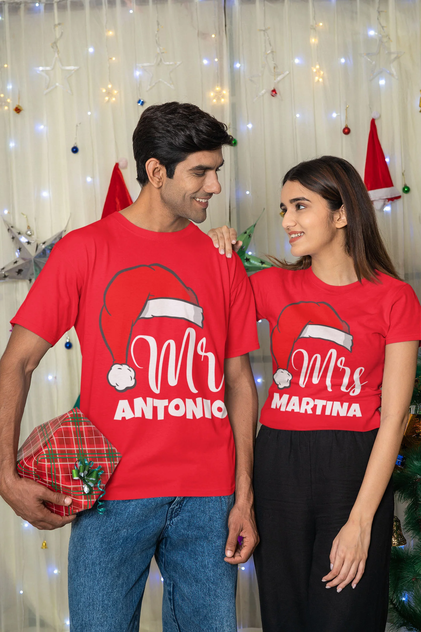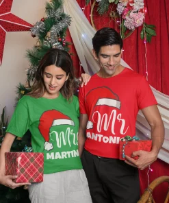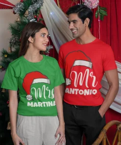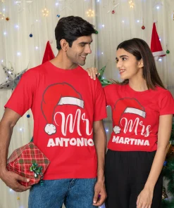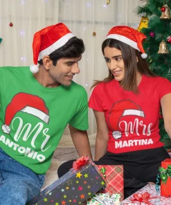 Coppia Magliette Natale T-Shirt Natalizie PERSONALIZZABILI con nome Mr & Mrs personalizzata idea regalo
