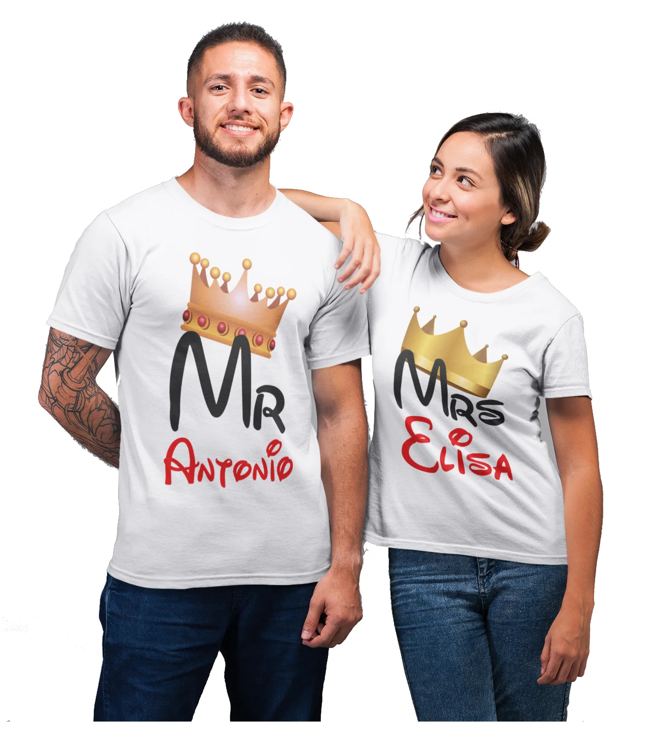 Coppia T-Shirt Magliette PERSONALIZZABILI SanValentino Mr & Mrs Regalo Lui e Lei innamorati Anniversario Matrimonio Fidanzati Innamorati