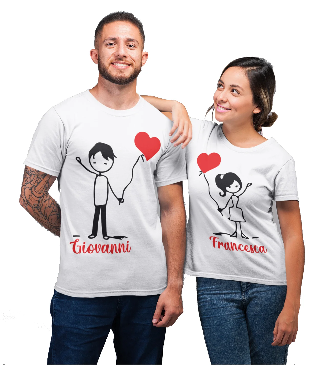Coppia T-Shirt Magliette PERSONALIZZABILI SanValentino Palloncini Regalo Lui e Lei innamorati Anniversario Matrimonio Fidanzati Innamorati