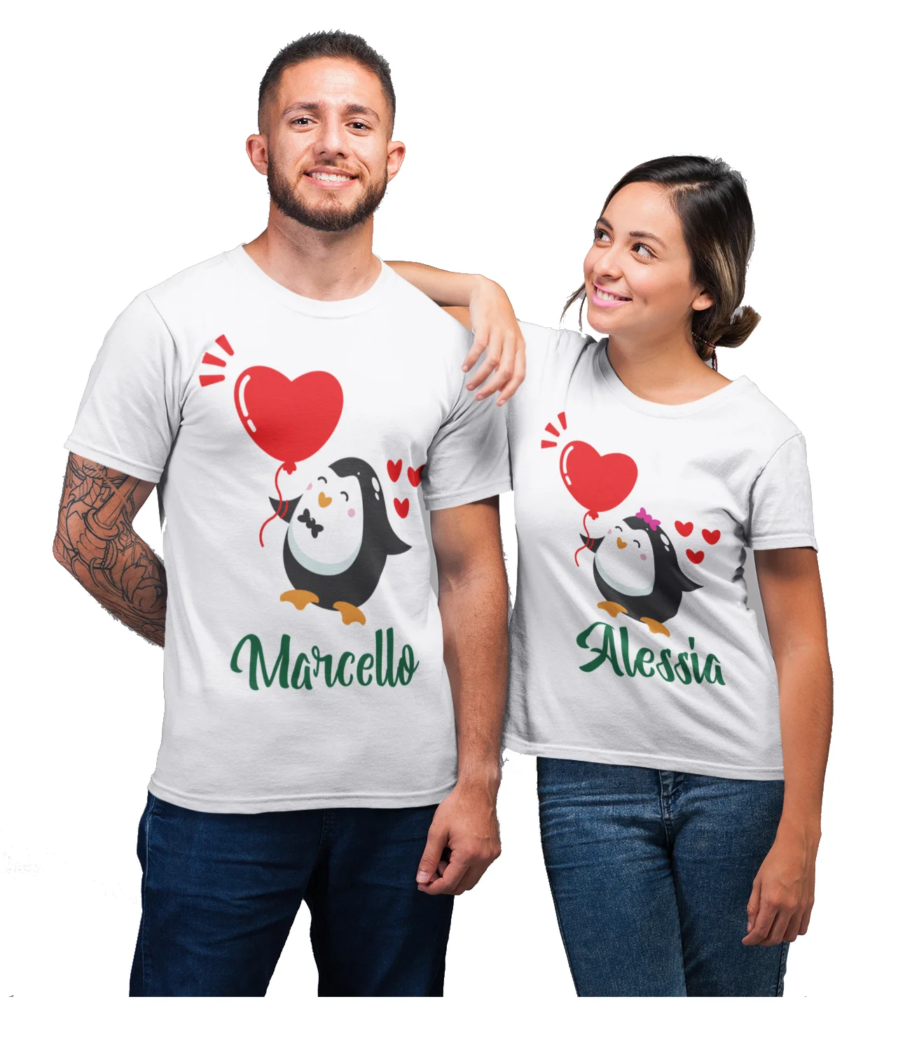 Coppia T-Shirt Magliette PERSONALIZZABILI SanValentino Pinguini Regalo Lui e Lei innamorati Anniversario Matrimonio Fidanzati Innamorati