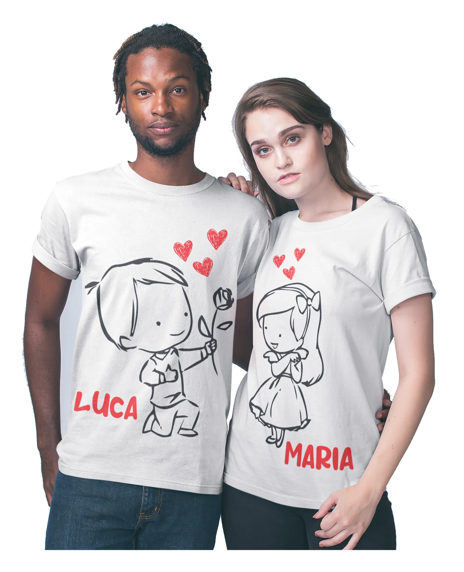 Coppia T-Shirt Magliette SanValentino PERSONALIZZABILI con nome Fumetto Innamorati Love idea regalo