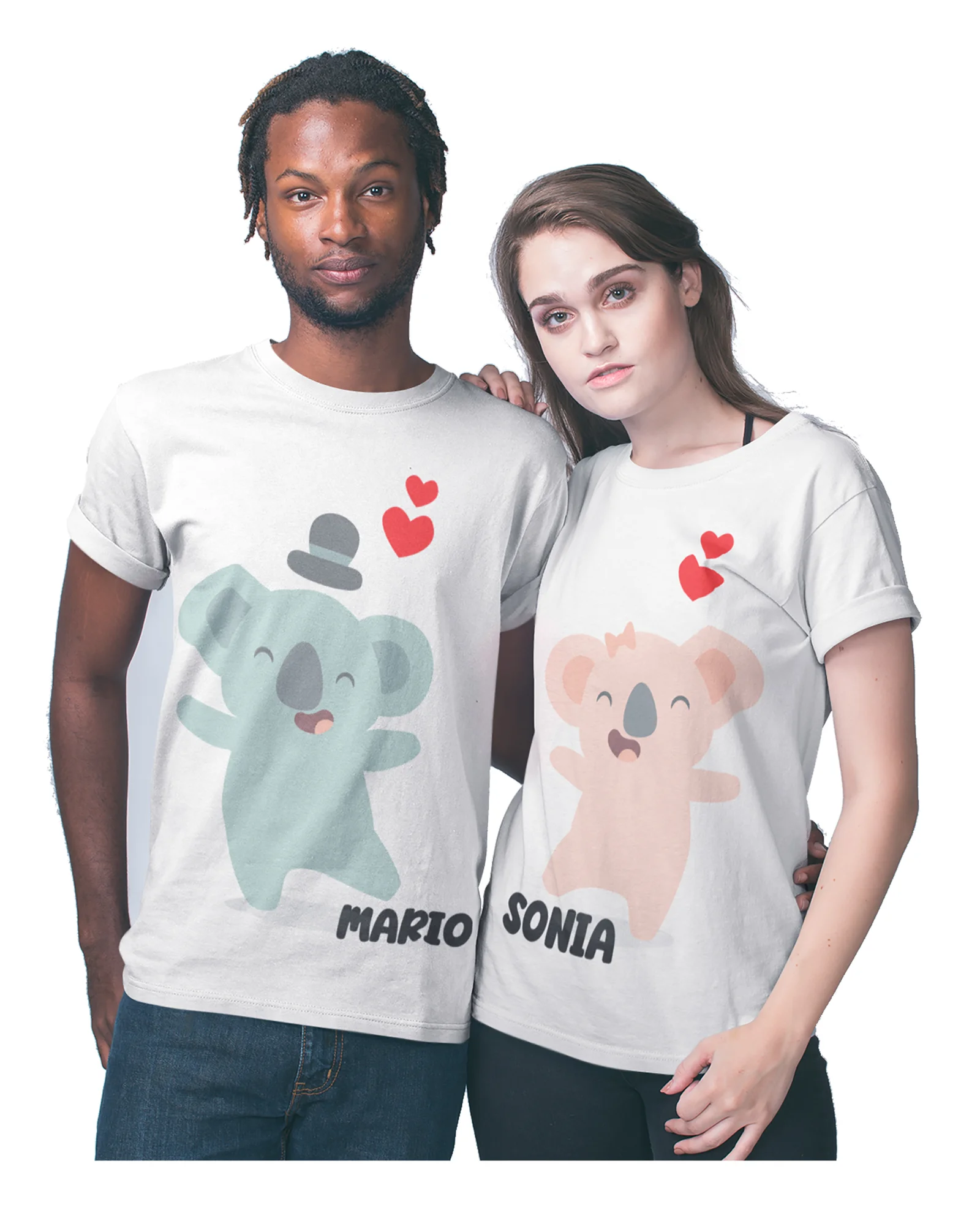 Coppia T-Shirt Magliette SanValentino PERSONALIZZABILI con nome Koala Innamorati Love idea regalo