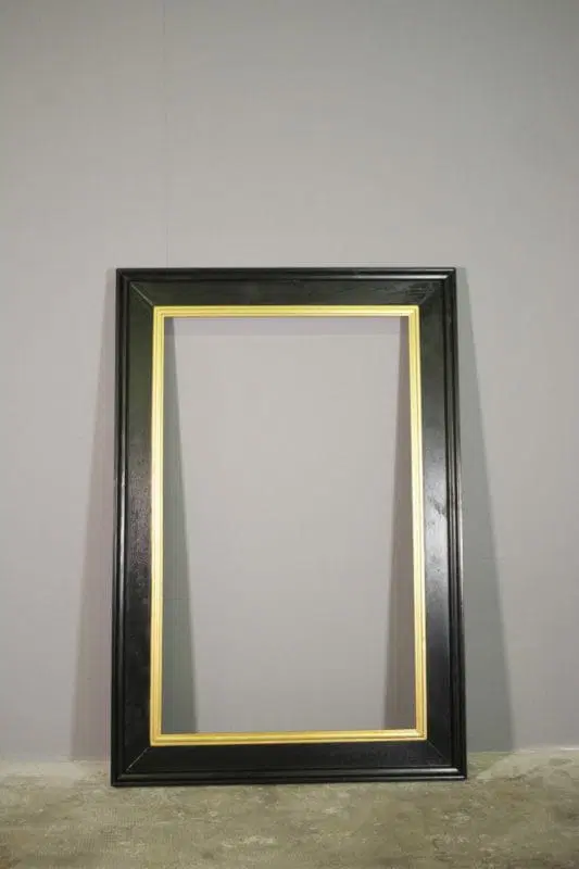 Cornice decorativa in legno di abete tinta nero e oro, anni 90/2000