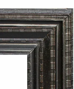 Riferibile al XVII secolo circa, la cornice ebanizzata presa in esame presenta un intaglio denominato guilloché, la cui fascia si presenta come un susseguirsi di gole lisce alternate a fasce intagliate a onde continue.