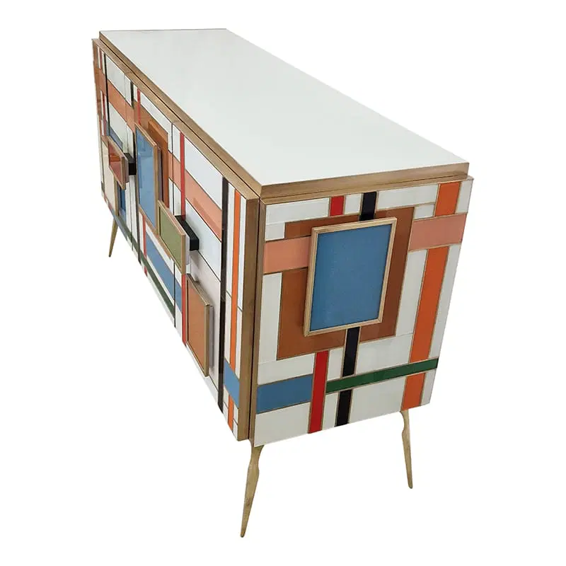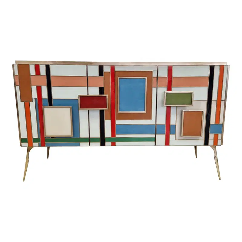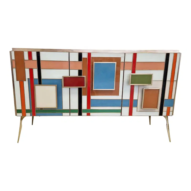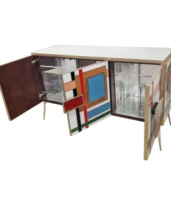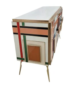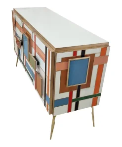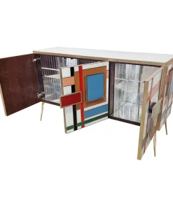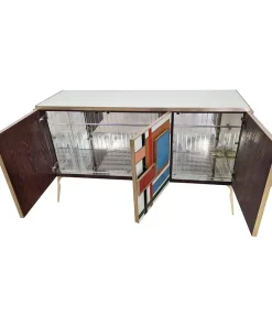 Recensisci per primo “Credenza a tre ante a vetri colorati e due vani interni; profili e piedi in ottone” Annulla risposta