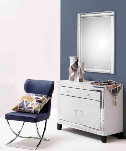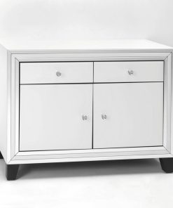 Intrigante credenza con 2 ante e 2 cassetti, ideale per chi ama lo stile contemporaneo e per chi apprezza le superfici riflettenti. Infatti, questa madia moderna si caratterizza proprio per la lucidità delle superfici, come bianco lucido e inserti in specchio, un connubio che genera un effetto particolarmente elegante, inoltre i pomelli gioiello sono il tocco finale che aumentano l’eleganza del mobile.