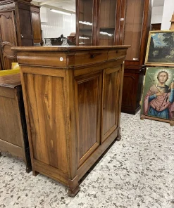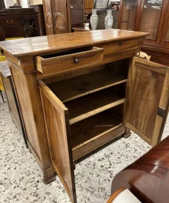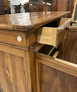 Credenza francese di metà 1800 stile Luigi Filippo in legno di noce. Presenta cassetti sottopiano, 2 ante chiuse e ripiani interni.