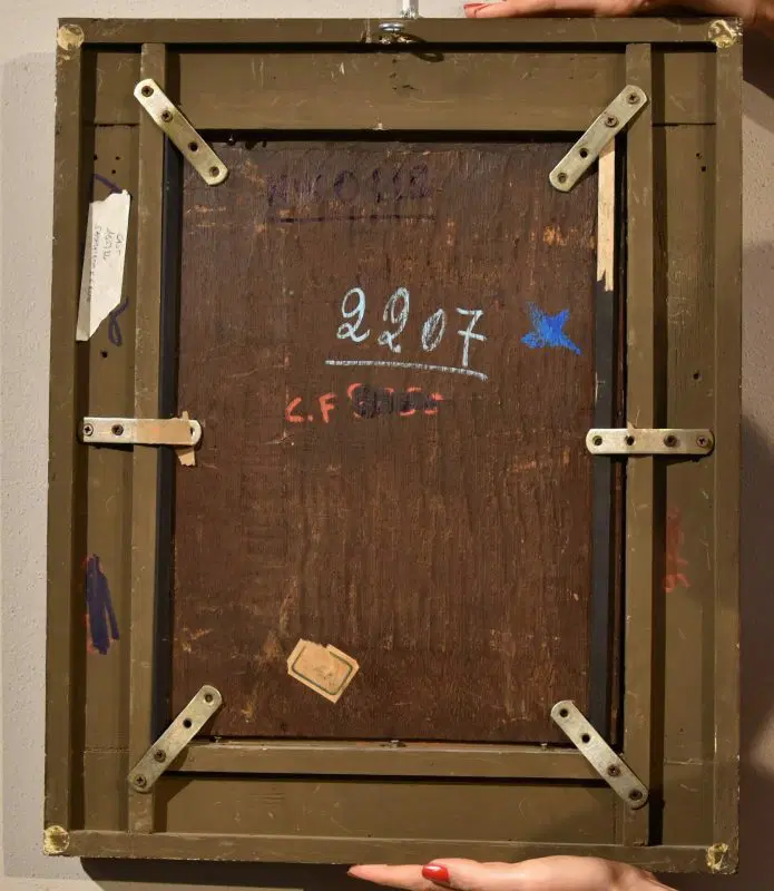 Le condizioni di conservazione dell’opera appaiono molto buone. Il dipinto è venduto assieme ad una piacevole cornice dorata.