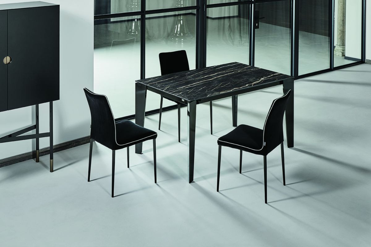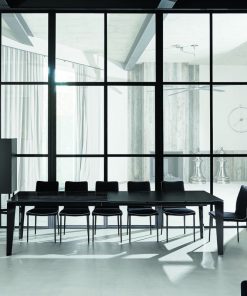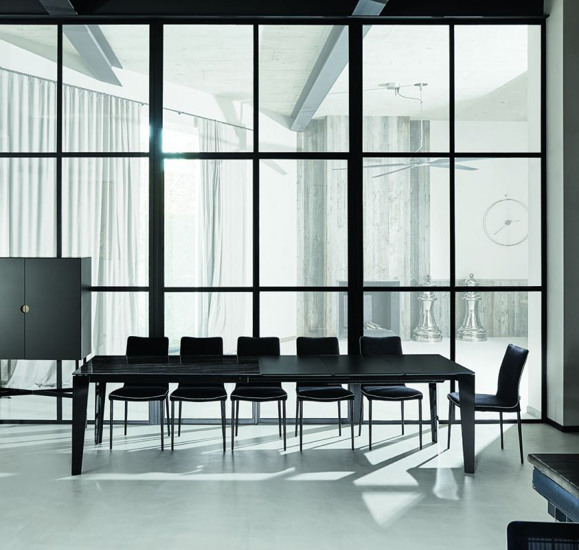 Tavolo design Cruz allungabile Bontempi, un modello che permette di raggiungere una lunghezza di quasi 3 m, in modo facile e veloce, grazie a 3 prolunghe riposte sotto il piano. Il design lineare con gambe affusolate sono l’elemento caratterizzate, reso possibile dalla struttura in acciao laccato.