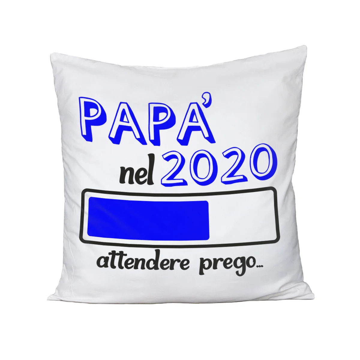 Cuscino Festa del Papà – Papà nel 2020 attendere prego – humor – happy father’s day – idea regalo – Dimensioni 40x40cm.