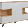 Porta tv basso Dalciso, un mobile dalle linee rette e uno stile pulito che convince tutti, anche per il lato prettamente funzionale. infatti, Dalciso comprende due ante laterali a ribalta e due vani centrali. Realizzato in legno con colori rovere chiaro e grigio chiaro, Dalciso è un prodotto affidabile, versatile e pratico.