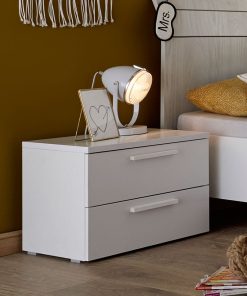 Comodino con 2 cassetti Daliso in legno bianco opaco e disegnato da forme semplici, per inserirsi perfettamente con l’arredamento della tua camera da letto. Infatti, il nostro comodino moderno potrà essere abbinato con altri mobili dello stesso design, ma accostarsi anche con il tuo letto, scegliendo anche delle maniglie colorate per donare un tocco di vivacità alla tua camera o cameretta.