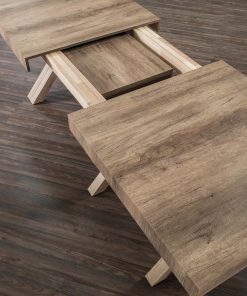 Tavolo da pranzo moderno Dalmiro realizzato interamente in legno, una soluzione efficientissima se si pensa ad un tavolo allungabile, solido e stabile.