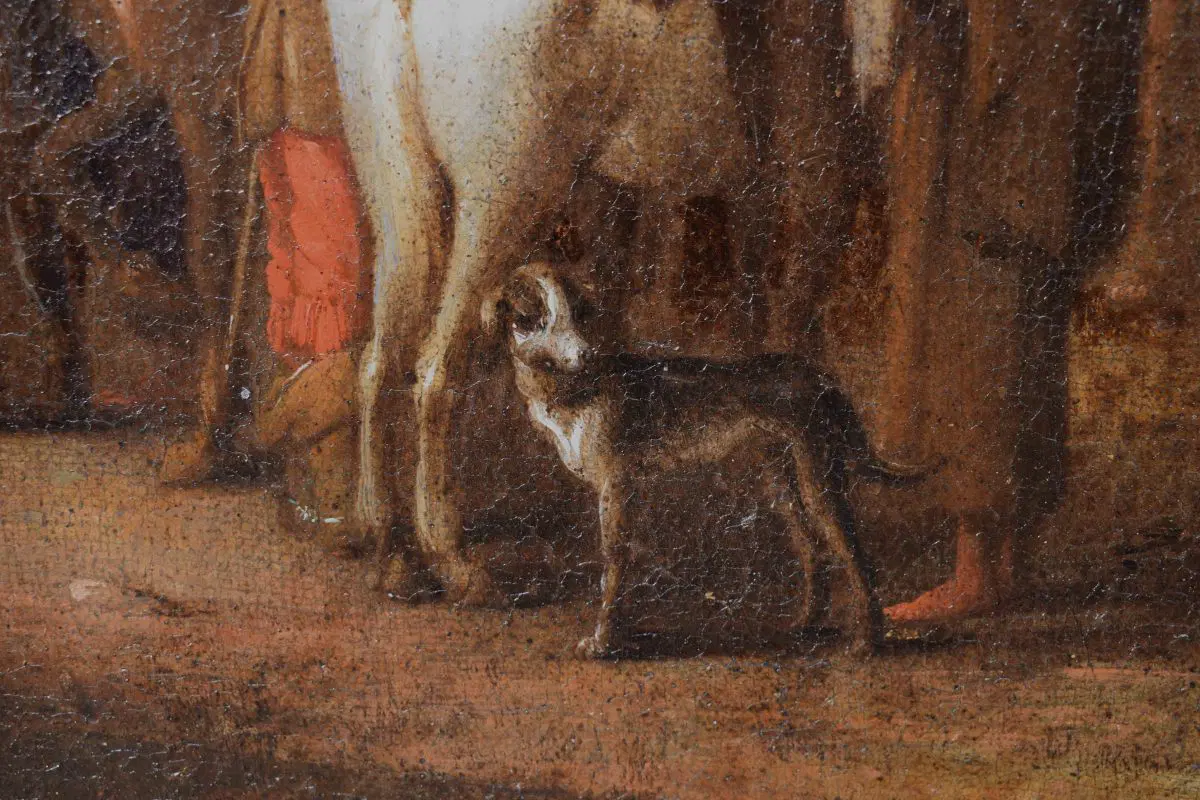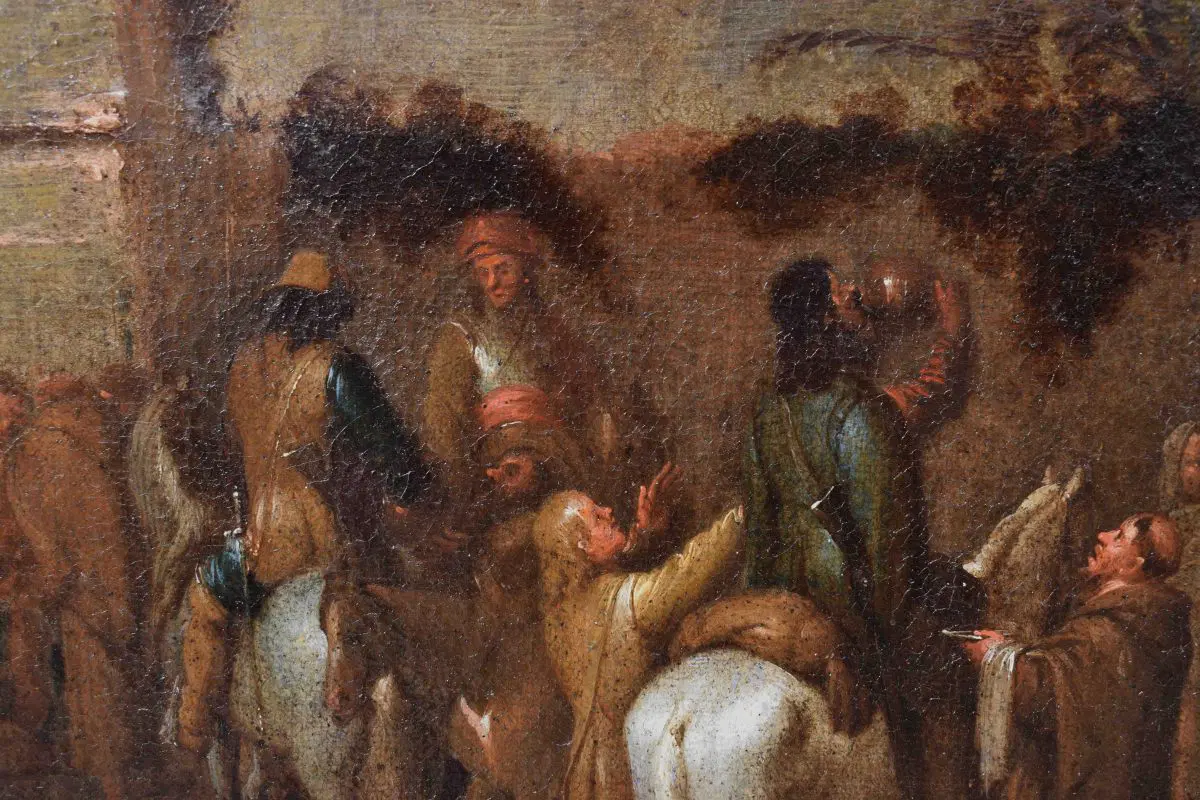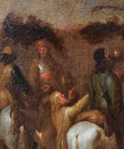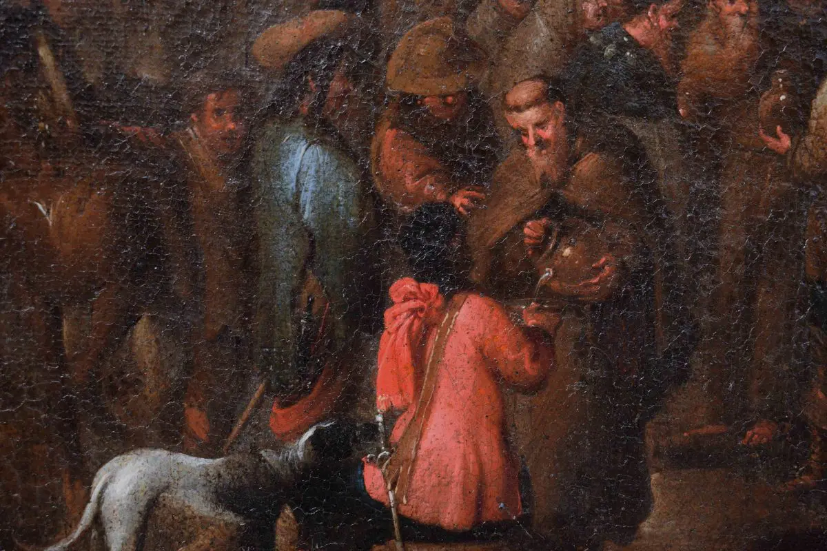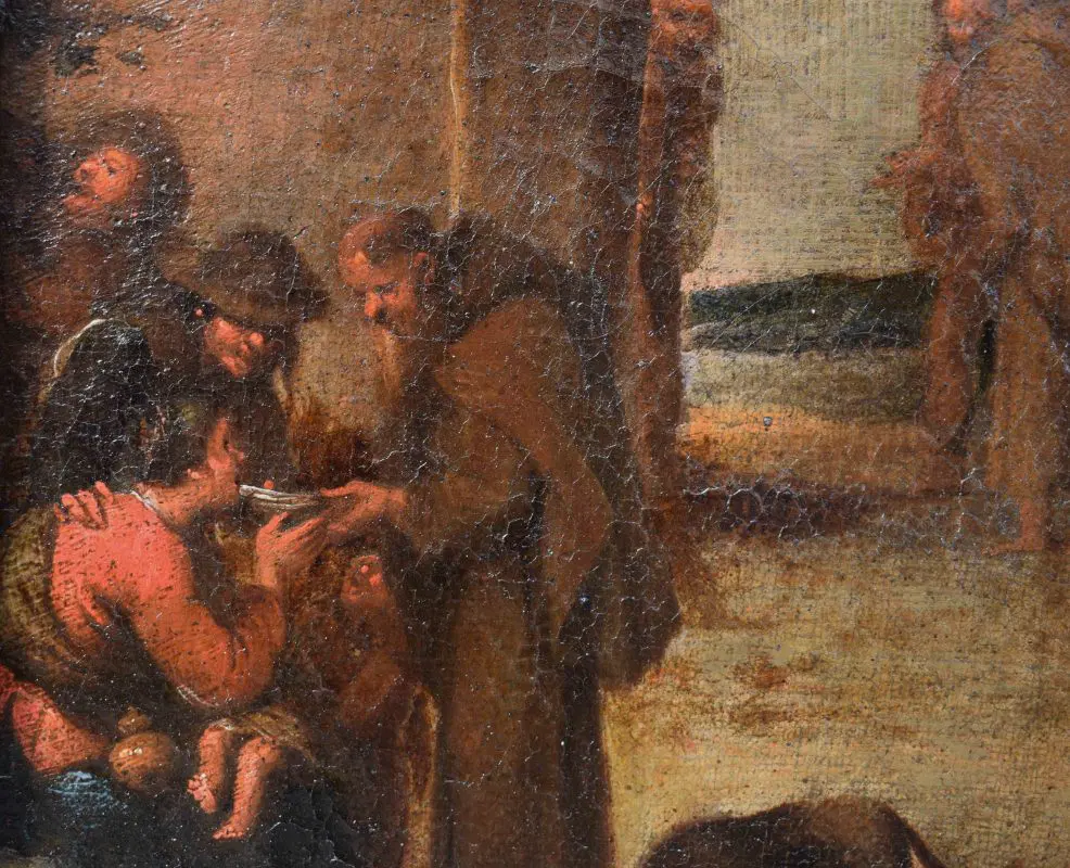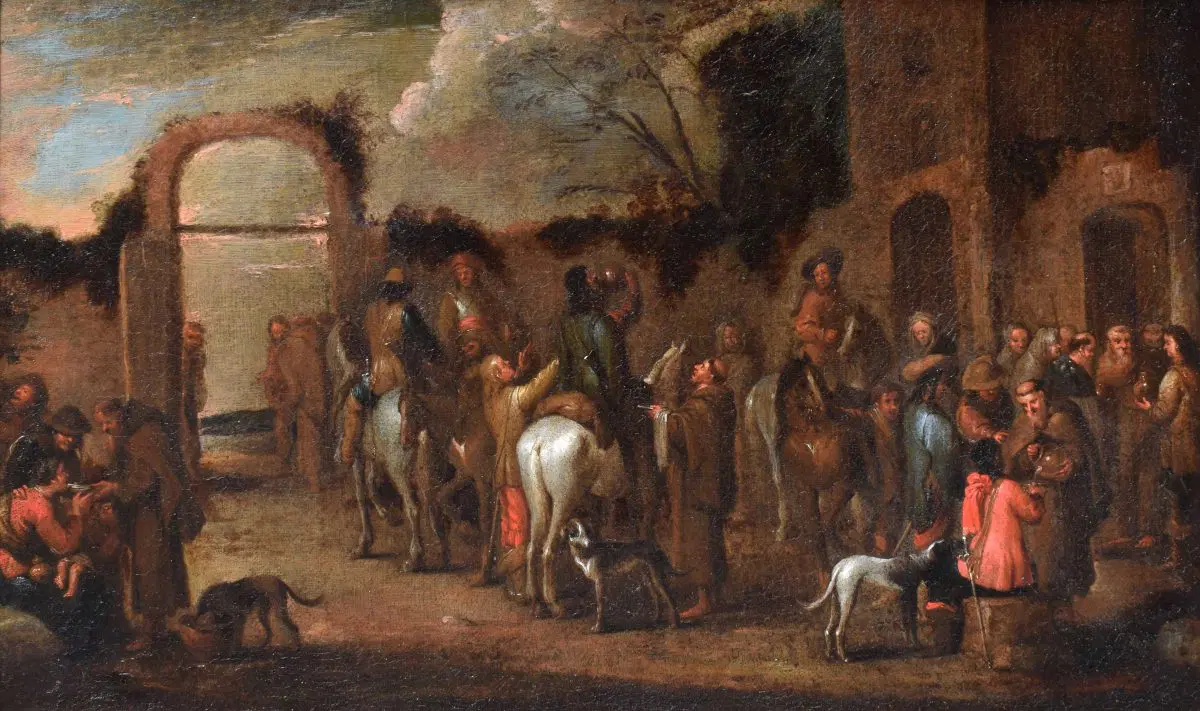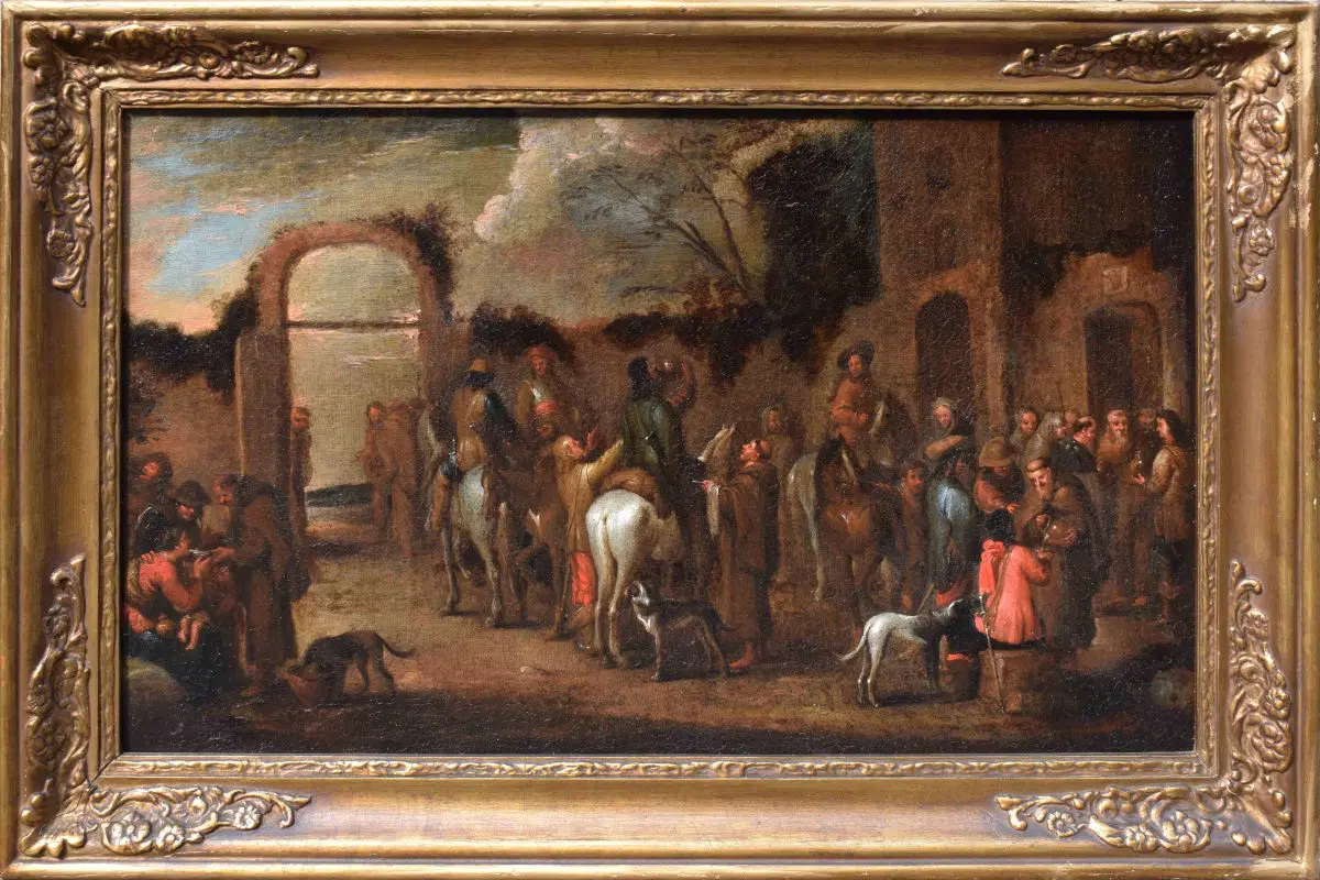 La tela è da mettere in relazione con la composizione di medesimo soggetto di Cornelis De Wael, oggi conservata presso le collezioni del Patrimonio Artistico del Banco Popolare, parte di una serie dedicata alle sette Opere di Misericordia corporale del medesimo autore. La composizione, ridotta nel formato e nella visione panoramica, è indicazione del successo che le serie condotte dal maestro anversese, attivo per la maggior parte della carriera a Genova, ebbero nello scenario collezionistico coevo e successivo.