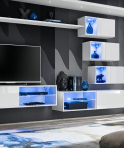 Fantastica parete per soggiorno Deanira costituita da ben 9 elementi, uniti in modo da realizzare una struttura armoniosa, dinamica e soprattutto razionale per organizzare al meglio possibile in tuoi spazi e fornire abbastanza capienza.