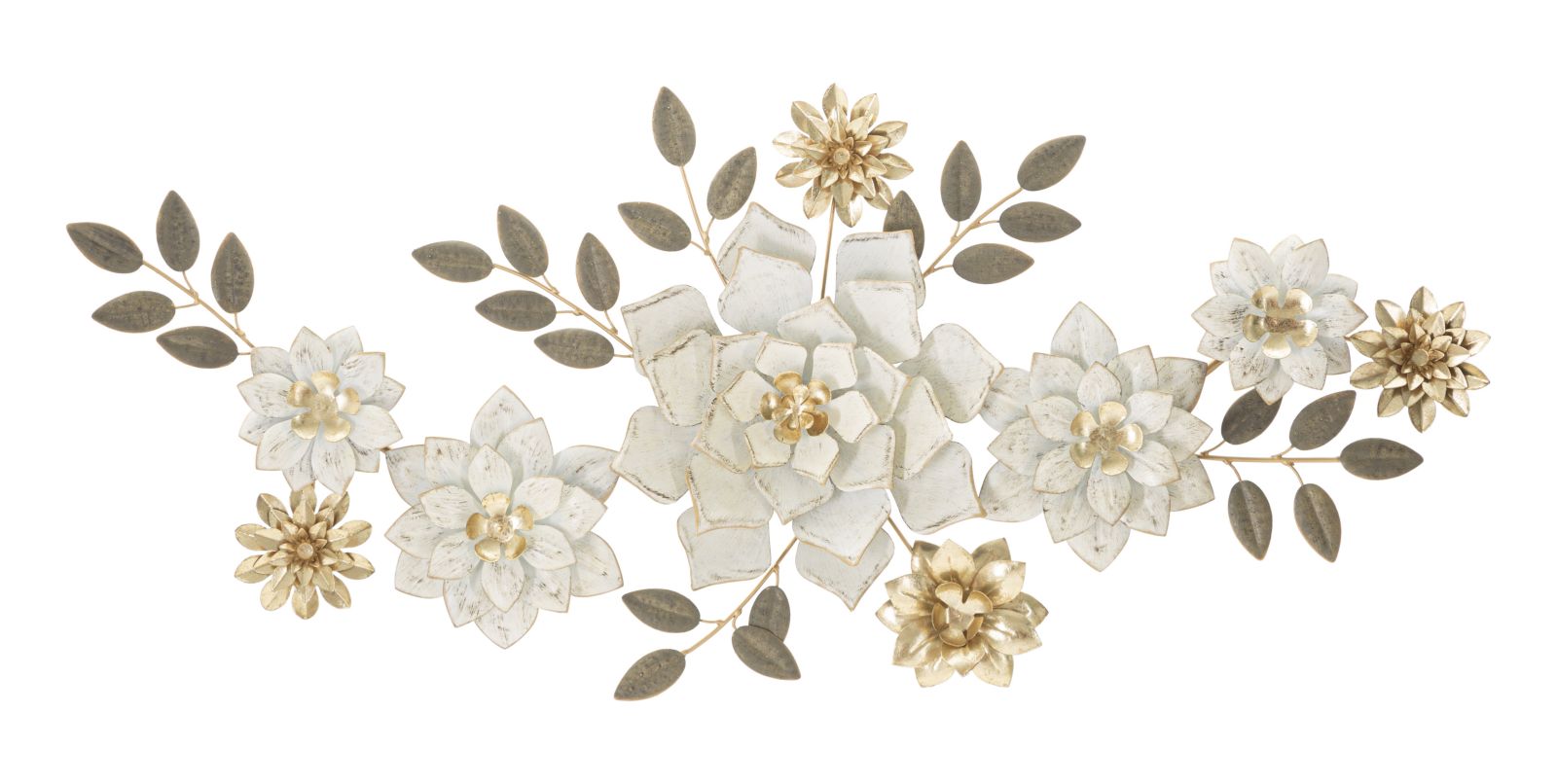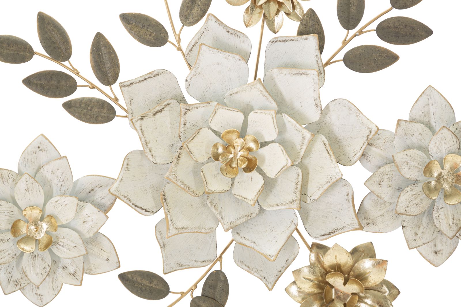 Decorazione da muro moderna con fiori e foglie in metallo 3D cm 106x5x46h