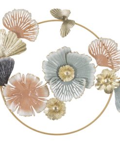 Decorazione da parete moderna in metallo con fiori in 3D cm 91x6x57h