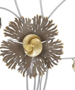Decorazione da parete moderna prodotta in metallo, il modello ideale per chi ambisce a completare un arredamento fine ed elegante. Il pannello design riproduce una piccola composizione di fiori e foglie accompagnati da una delicata cornice. Inoltre, la presenza del colore oro, cataloga questo complemento come elemento d’arredo in stile glamour.