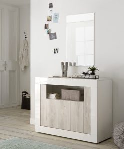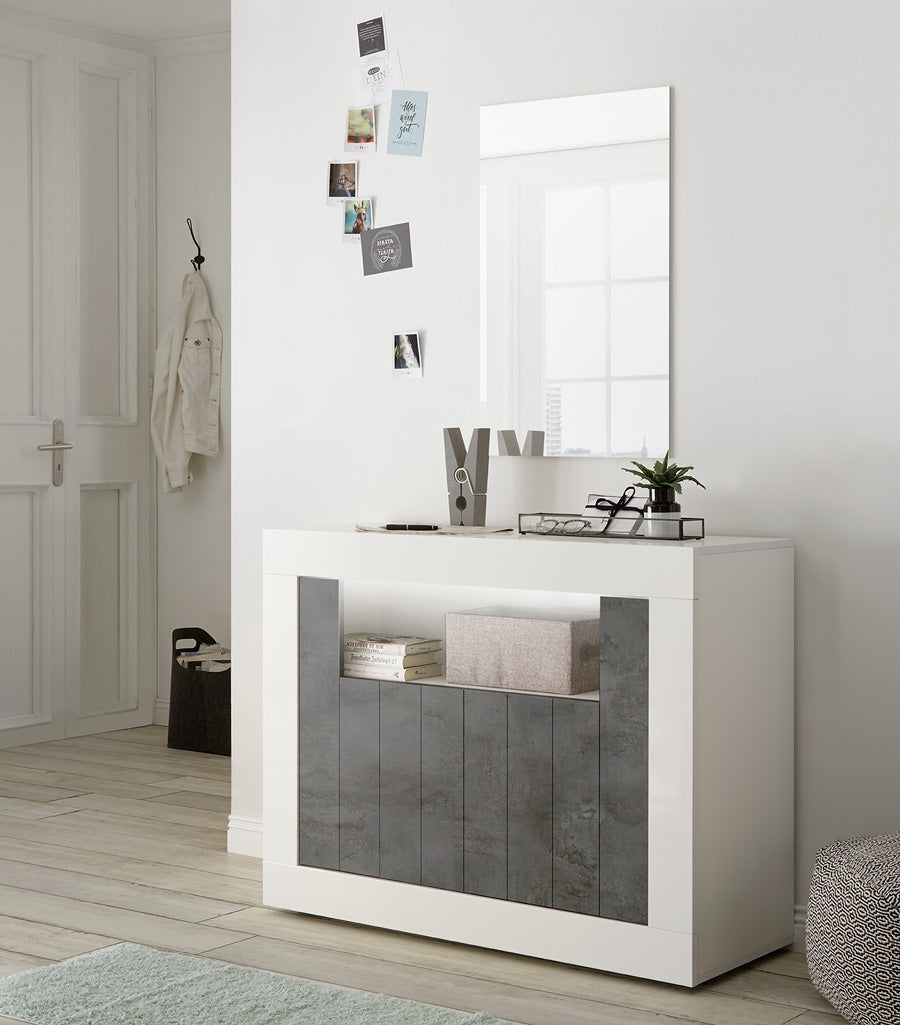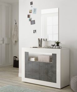 Denise è un mobile da soggiorno da cm 110, una versione più piccola e compatta della serie di cui fa parte. Denise è composta da struttura bianco lucido con 2 ante e utile vano centrale, ideale per creare un ambiente grazioso e funzionale. La nostra credenza in legno presenta il frontale con doghe serigrafate ed è disponibile in numerosi colori da associare al bianco, come ossido, cemento noce dark o una versione delicata come pino bianco.