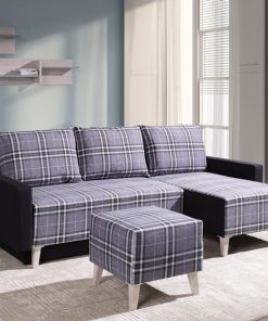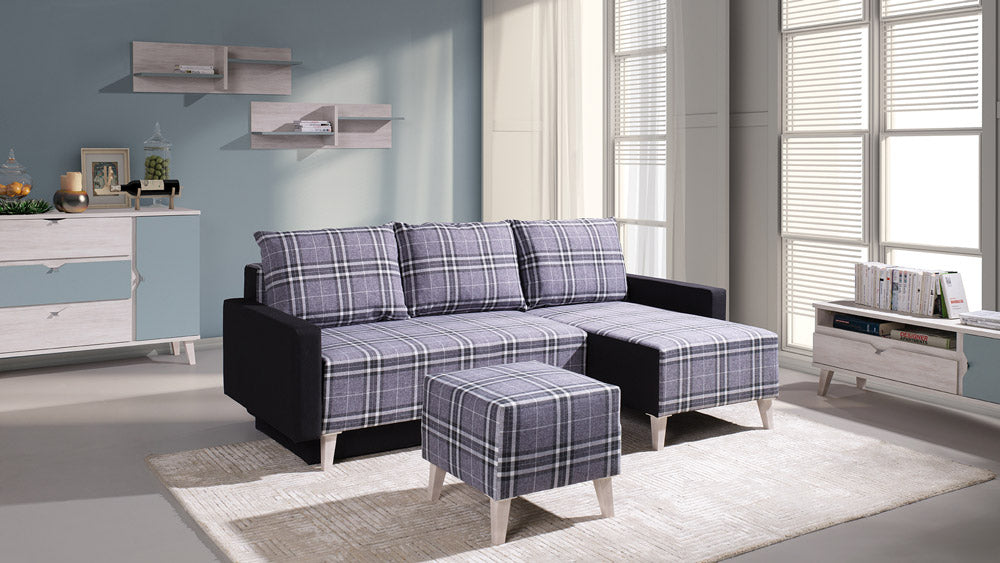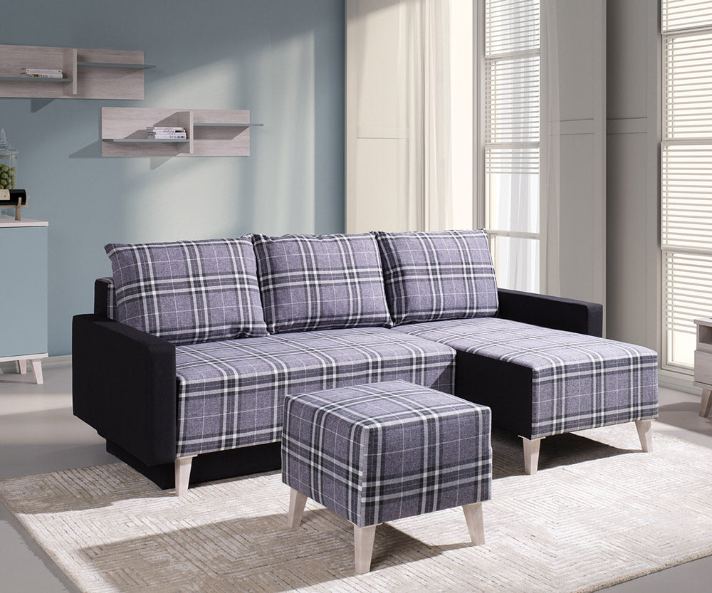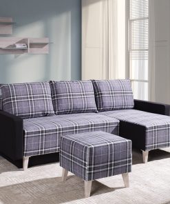 Desio – Divano letto moderno angolare da salotto in tessuto scozzese cm 225x140x90h