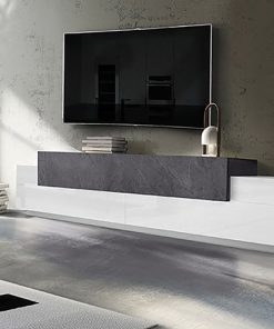Fantastico mobile porta tv, realizzato in legno, colore bianco lucido. La struttura è dotata di 2 ante, spaziose e abbastanza capienti, ed un’anta a ribalta disponibile nei colori ossido o pero. Il mobile, progettato secondo uno stile moderno, è perfetto per chi desidera arredare la propria casa con un look contemporaneo e unico. Un complemento originale, da abbinare anche agli altri complementi della stessa linea, e delineare il proprio arredamento con stile.