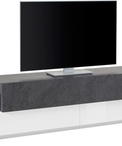 Fantastico mobile porta tv, realizzato in legno, colore bianco lucido. La struttura è dotata di 2 ante, spaziose e abbastanza capienti, ed un’anta a ribalta disponibile nei colori ossido o pero. Il mobile, progettato secondo uno stile moderno, è perfetto per chi desidera arredare la propria casa con un look contemporaneo e unico. Un complemento originale, da abbinare anche agli altri complementi della stessa linea, e delineare il proprio arredamento con stile.
