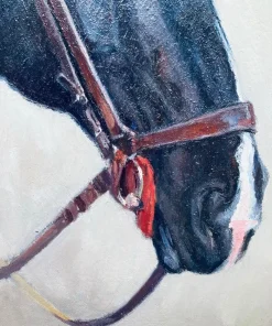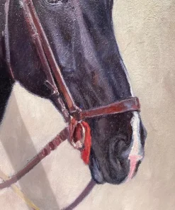 Il cavallo di razza Hannover rappresenta una delle razze equine più importanti al mondo per quanto riguarda la carriera agonistica nelle discipline equestri ( Salto Ostacoli, Dressage, Completo). Con circa 16000 fattrici registrate e più di 300 stalloni qualificati ed altamente selezionati, oggi vanta una posizione di rilievo a livello mondiale ed ha contribuito al miglioramento genetico di molte altre razze di cavalli sportivi. I cavalli Hannover sono tra i vincitori in tutte le competizioni di livello, Olimpiadi, Mondiali, Europei di Salto Ostacoli, Dressage e Completo. Sono ambasciatori di qualità, doti atletiche e prestazioni sportive eccellenti. Le aste di cavalli a Verden sono un appuntamento immancabile per tutti gli appassionati del mondo equestre. L’allevamento oggi è focalizzato a fini sportivi, le origini risalgono al XVI secolo quando i cavalli avevano un ruolo fondamentale in agricoltura e campo militare. Nel 1735 viene fondato il Celle Nationale State Stud, furono utilizzati Purosangue Inglesi per migliorare la razza Hannöversches Pferd. Dopo il 1870 la razza grazie al Libro Genealogico fu consolidata e stabiliti gli standards a partire dal 1888, oggi conosciamo il Verband. Nel 1922 fu fondato il consorzio ufficiale degli allevatori Verband Hannoverscher Warmblutzüchter creando un centro dove registrare tutte le realtà allevatoriali. Dopo la seconda guerra mondiale la razza è stata rivisitata apportando sangue Trakenhen e Purosangue per migliorare le doti atletiche. Oggi il cavallo Hannover brilla per il sangue caldo, l’eccellente cavalcabilità, intelligenza, andature armoniose, eleganza, struttura fisica potente e corretta, apprezzato in tutto il mondo come partner sportivo e di piacere. l’Ente Hannoveraner è attivo nel campo della promozione sportiva con numerosi eventi e programmi di allevamento mirati. La carriera degli artisti animalier era strettamente legata alle evoluzioni dei loro soggetti, il cavallo trasforma la sua attitudine per i lavori agricoli a quella per le discipline sportive, già in Inghilterra gli allevatori di Purosangue Inglesi appartenenti alla nobiltà e borghesia, iniziarono ad appassionarsi all’arte commissionando i ritratti dei loro beniamini da esporre nei Country Club luogo di business e svago dell’epoca. Questa tradizione ha influito sullo sviluppo dell’arte animalier diffondendola a livello internazionale. Il ritratto di Bachrach Barée raffigura una delle fattrici premiate dall’Hannover Reitpferd, che ha contribuito alle linee di sangue moderne per il cavallo sportivo. L’esecuzione è precisa, denota una profonda conoscenza dell’espressività e indole equina, i colori sono pastosi, materici e brillanti.