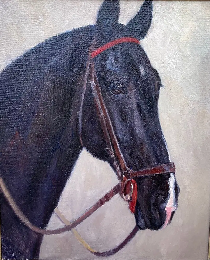 Dipinto animalier “ Cavallo Hannover morello – Black Horse “ Helmut Bachrach Barée ( 1898 – 1969)