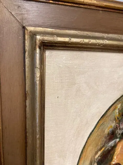 Dipinto olio su cartoncino in cornice laccato “ Volto di Donna “ P. Salatini anni 50 mis 63 x 64