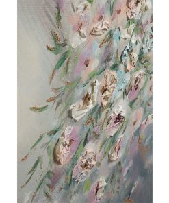 Dipinto olio su tela, con struttura in legno di pino, design moderno. Il quadro raffigura una ragazza girata di spalle, con una gonna fatta di fiori bianchi. Particolare ed elegante, per un arredamento unico.