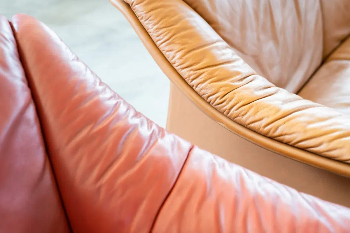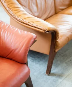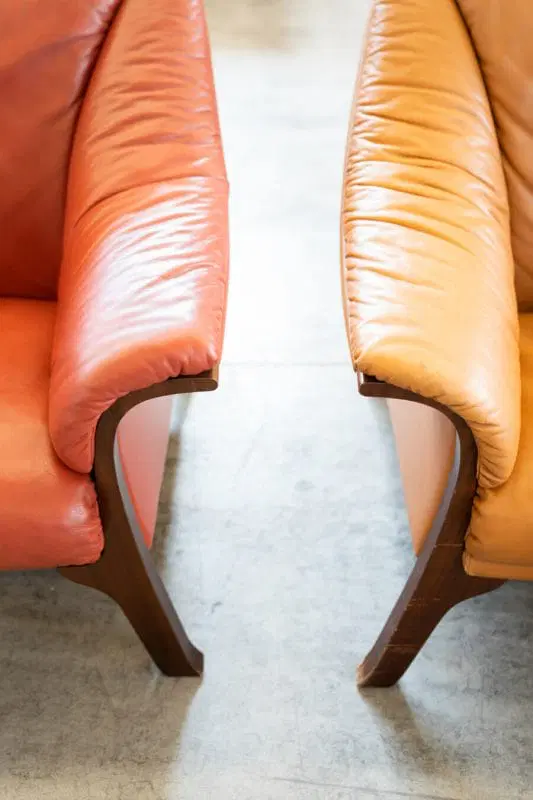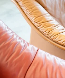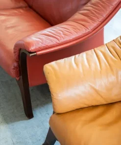 Divani Frau in pelle cognac e bordeaux, anni ’80/’90, set di 2