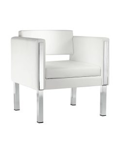 Divano biposto moderno ideale per l’ufficio, per allestire ad esempio una sala d’attesa. Il divano moderno si distingue per la struttura in metallo cromato con rivestimento in ecopelle colore nero o bianco.