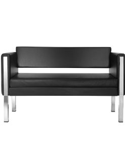 Divano biposto moderno ideale per l’ufficio, per allestire ad esempio una sala d’attesa. Il divano moderno si distingue per la struttura in metallo cromato con rivestimento in ecopelle colore nero o bianco.