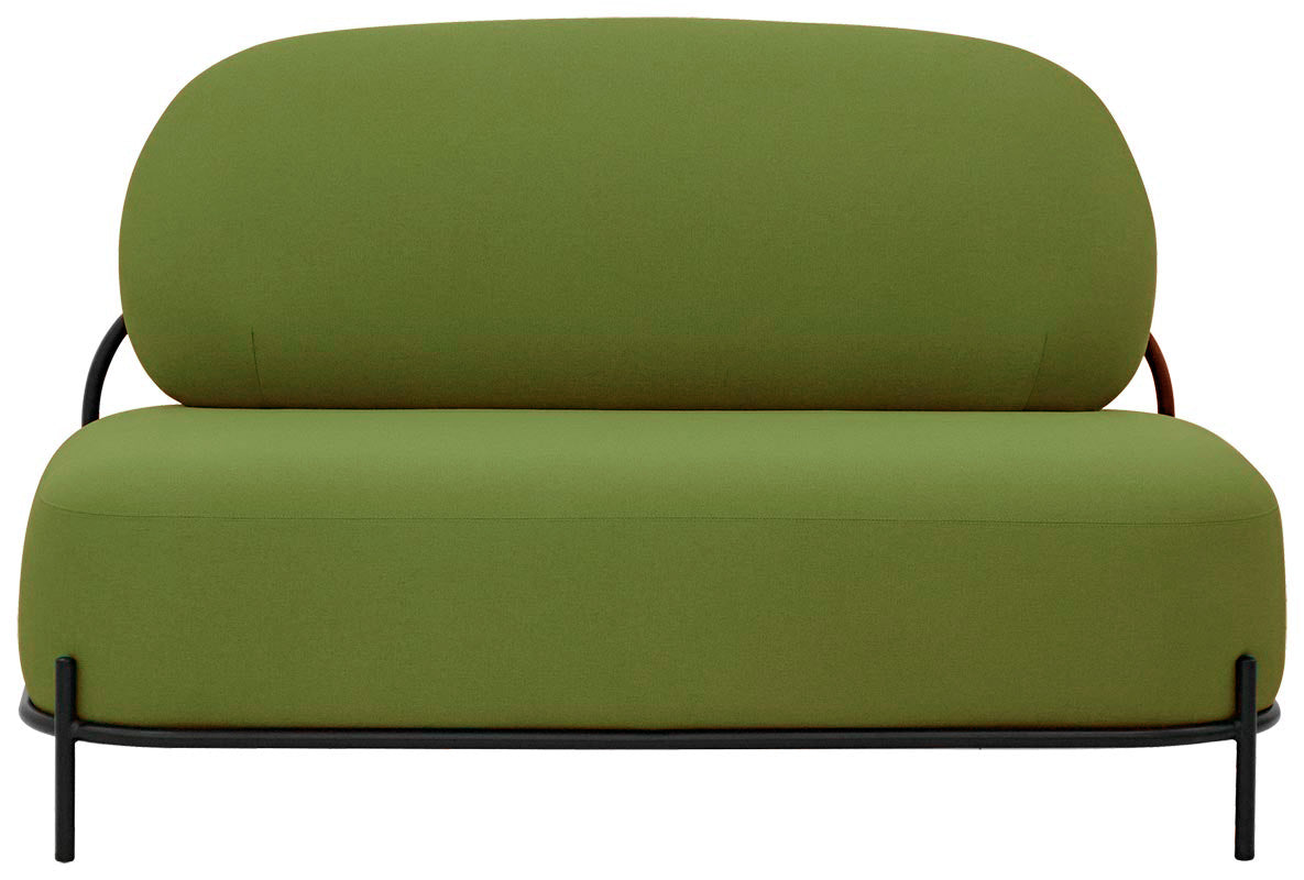 Divano moderno due posti composto da struttura in metallo con seduta e schienale imbottiti e rivestiti in tessuto. Un divano destinato a un arredamento giovanile e contemporaneo, grazie al minimalismo del design e alla gamma di colori pastello disponibili del rivestimento.