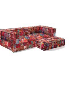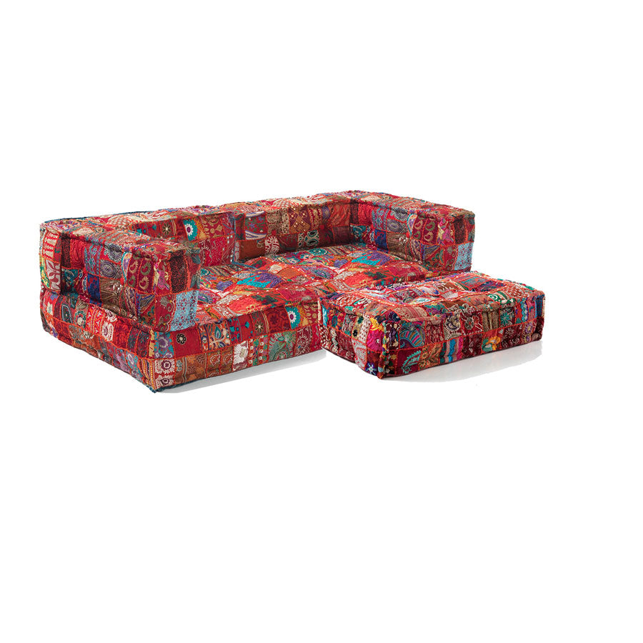 Esuberante per colori e fantasia, questo divano due posti, è un complemento che rinnoverà completamente l’immagine del tuo salotto. Infatti, questo divano biposto presenta il rivestimento con tecnica patchwork, che abbina molteplici tessuti in cotone, diversi nelle fantasie e nei colori, prevalentemente rosso, tanto da conseguire un aspetto particolarmente brillante e festoso.