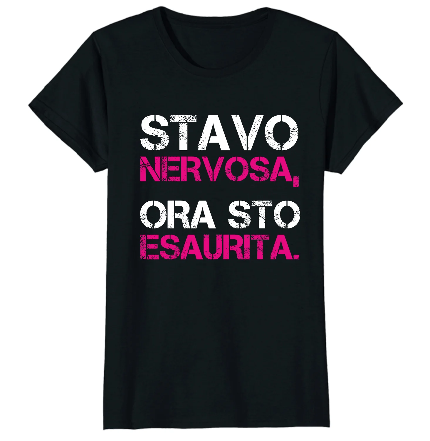 Donna Magliette Divertenti – Stavo Nervosa Ora Sto Esaurita Maglietta frasi meme