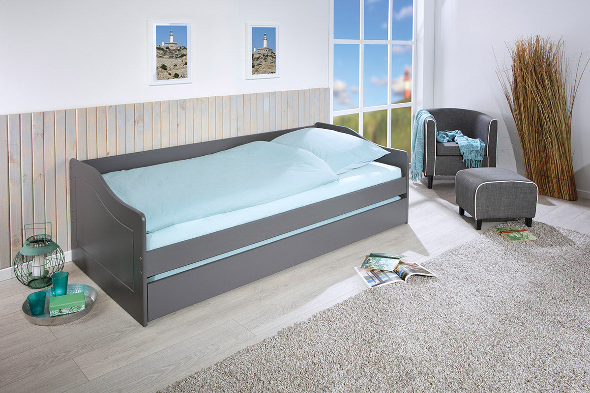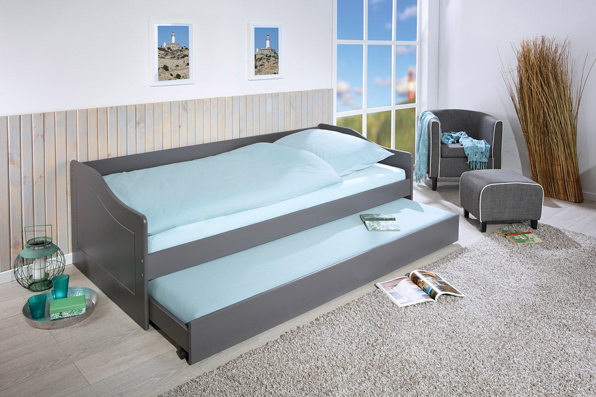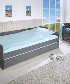 Anche il letto singolo Dualy merita considerazione per tutti coloro che cercano soluzioni salvaspazio. Infatti, Dualy con il suo caratteristico aspetto da divano collocato a parete, include nella sua struttura in legno massello, un cassettone inferiore utilizzabile come secondo letto o come spazio dove riporre biancheria. Distinto dal colore grigio, il letto moderno Dualy è ideale per completare la cameretta abbinando l’armadio dello stesso colore.