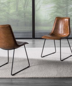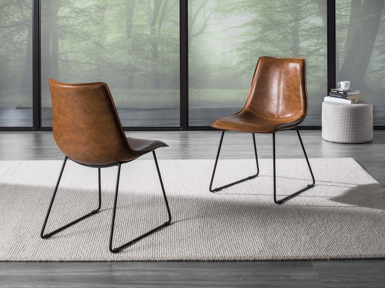 Sedia dallo stile industrial vintage, con gambe in metallo verniciato nero e scocca imbottita e rivestita in ecopelle effetto cuoio invecchiato. Originale e comoda, la sedia Dublino renderà esclusivi i tuoi ambienti.
