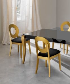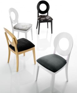 La bellezza della sedia Duchessa è tutta incentrata nelle linee classiche, dandole nuova connotazione attraverso dettagli molto caratteristici, come lo schienale tondo dalla forma ad anello, elemento distintivo di questa sedia design.